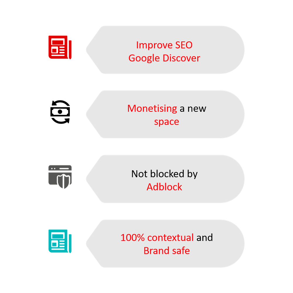 We automatically create videonews of all articles, improving SEO positioning and increasing the chances of getting into Discover.